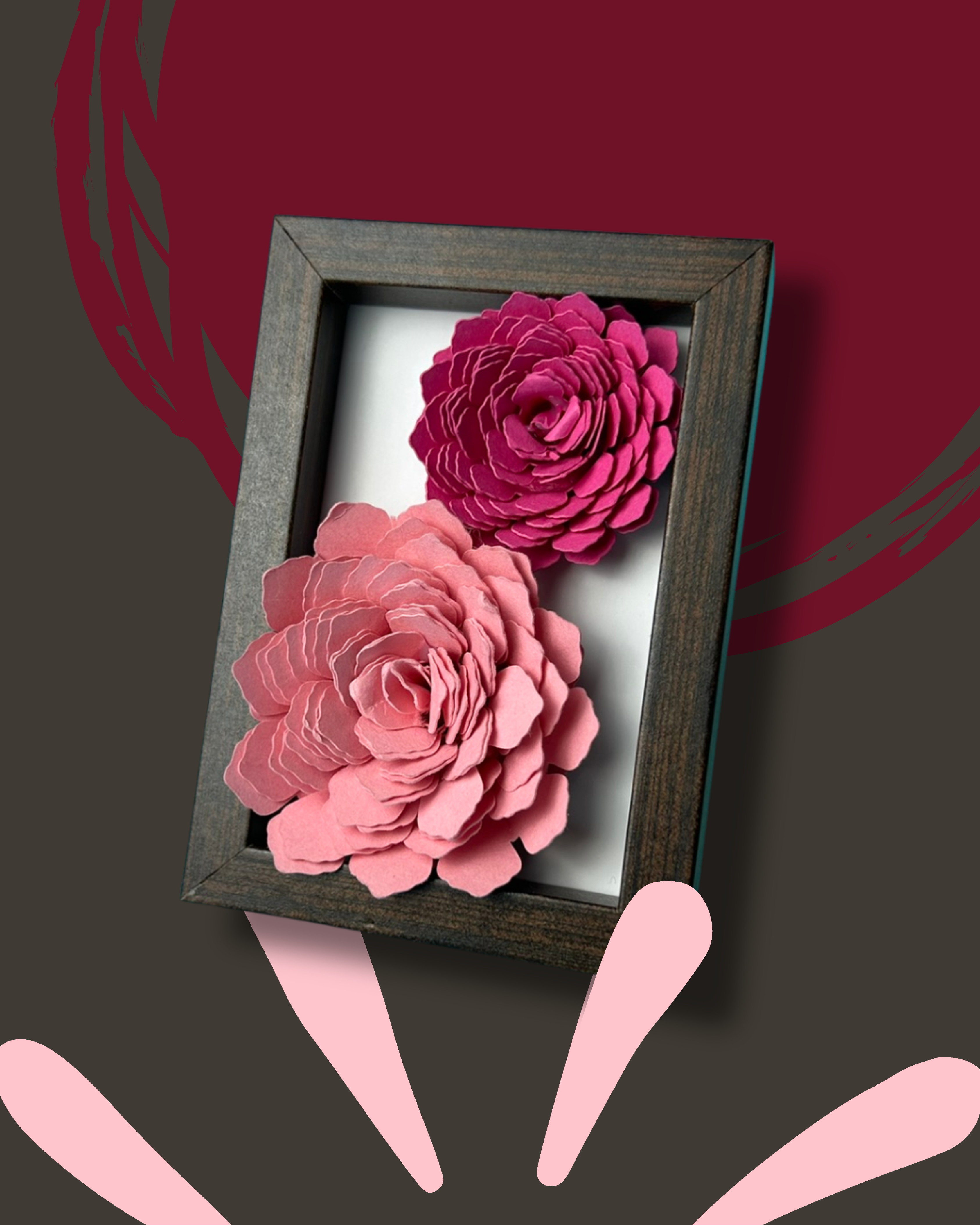 Shadowbox mit handgefertigten Papierblumen – Dekorahmen 6 x 8,5 x 2 cm in schwarz, weiß und dunkelbraun